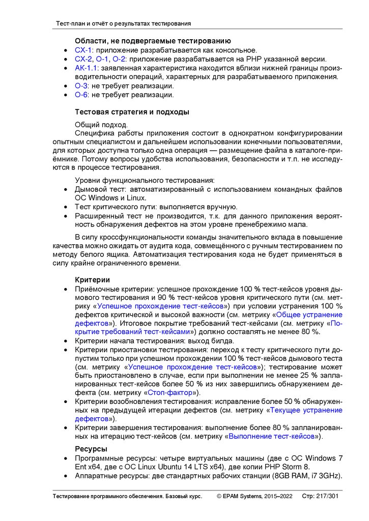 тестирования (см. выше раздел «Критерии» тест-плана);