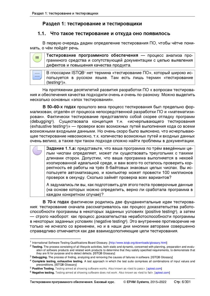 РАЗДЕЛ 1: ТЕСТИРОВАНИЕ И ТЕСТИРОВЩИКИ ................................................................................. 6