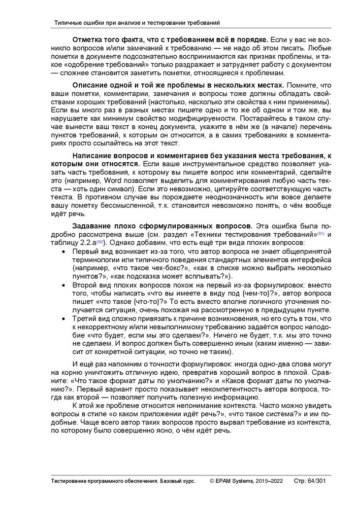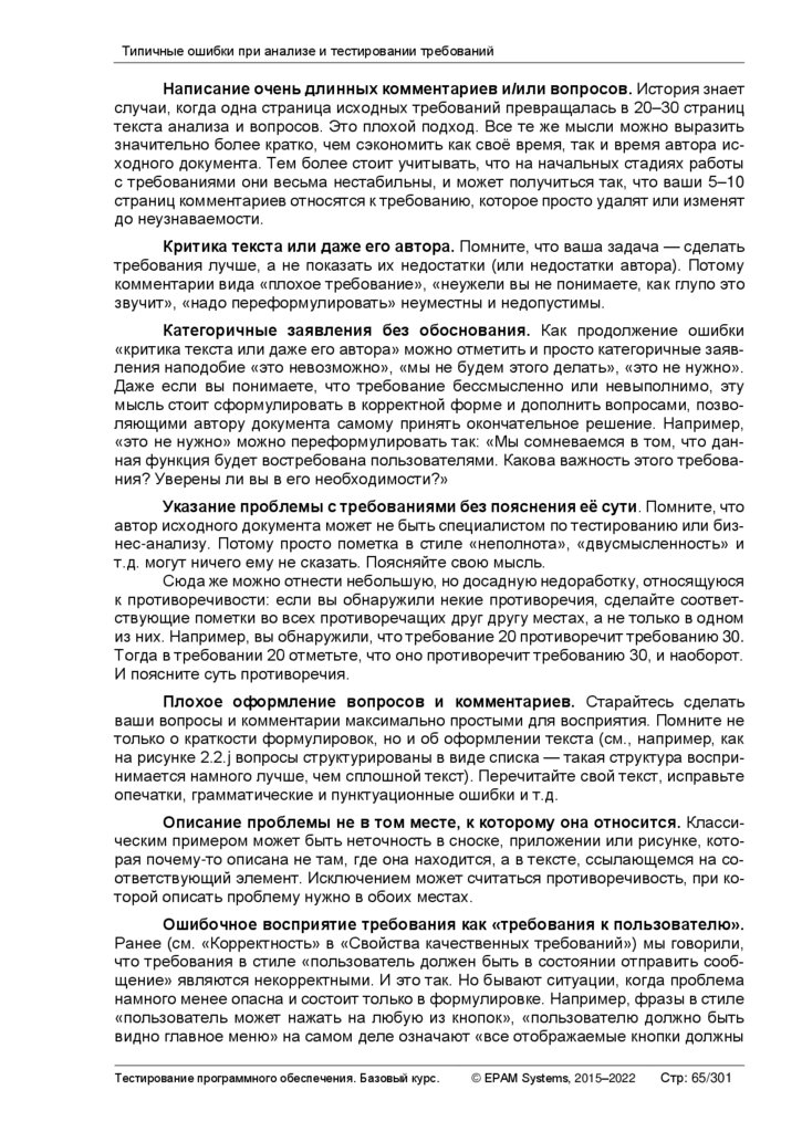 Типичные ошибки при анализе и тестировании требований ............................... 63