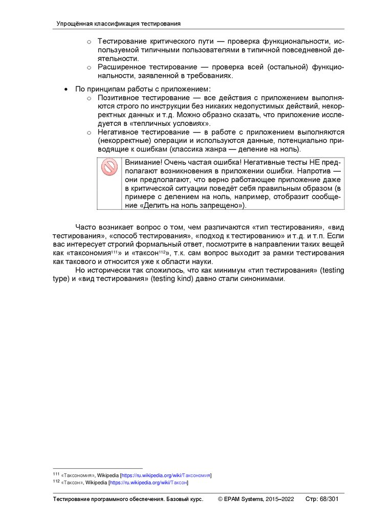 Упрощённая классификация тестирования .............................................................. 67