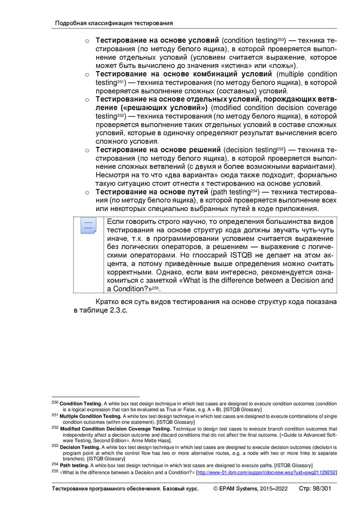 Тестирование программного обеспечения. Базовый курс.Содержание