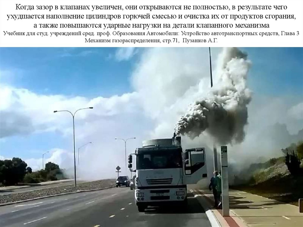 Когда зазор в клапанах увеличен, они открываются не полностью, в результате чегоухудшается наполнение цилиндров горючей смесью и очистка их от продуктов сгорания,