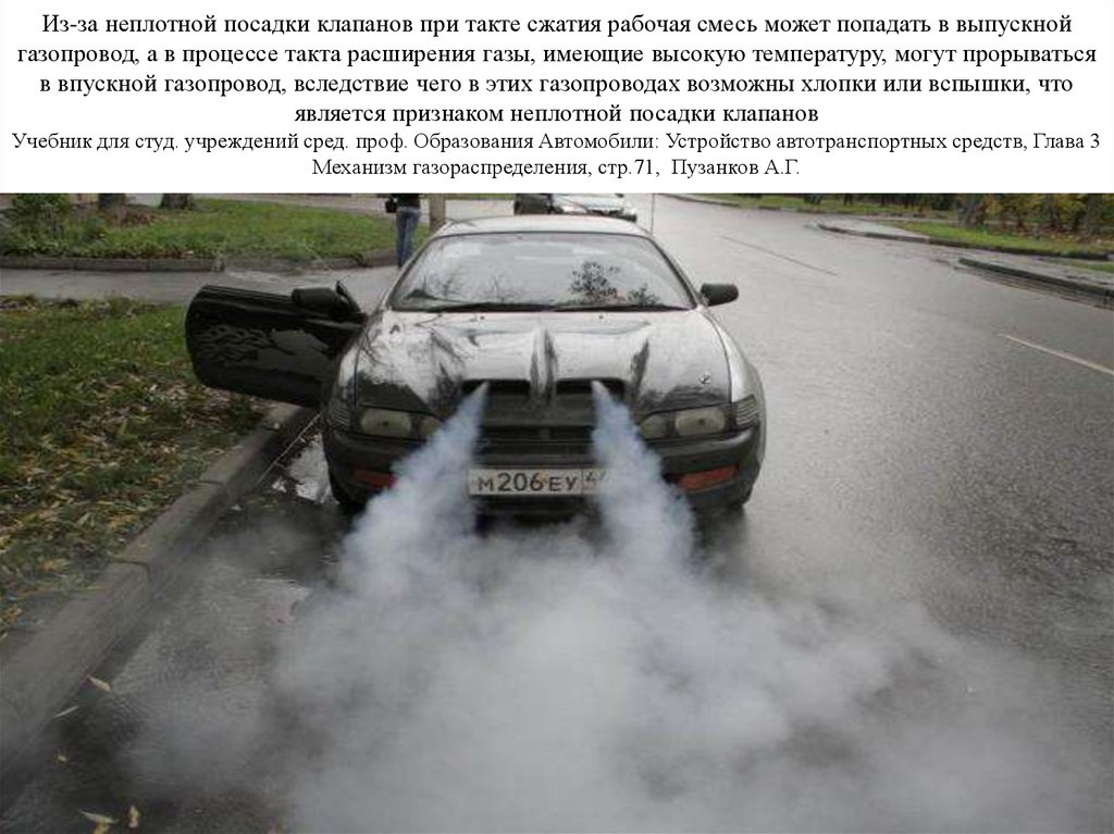 Из-за неплотной посадки клапанов при такте сжатия рабочая смесь может попадать в выпускнойгазопровод, а в процессе такта расширения газы, имеющие высокую температуру, могут прорываться