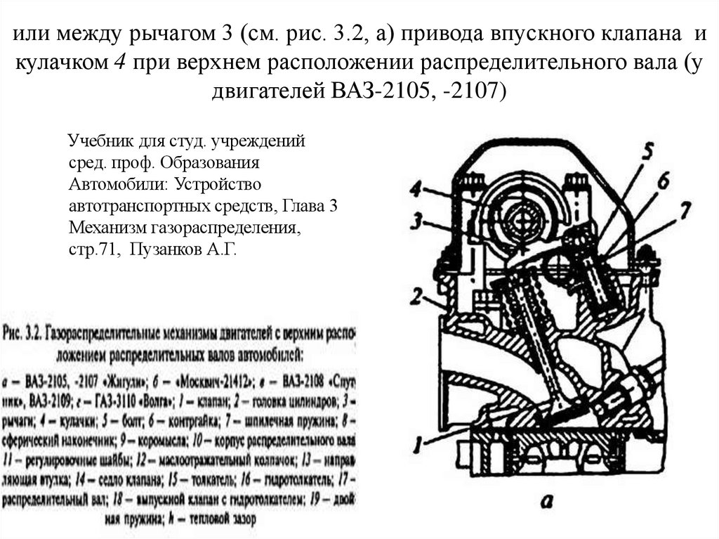 или между рычагом 3 (см. рис. 3.2, а) привода впускного клапана икулачком 4 при верхнем расположении распределительного вала (у