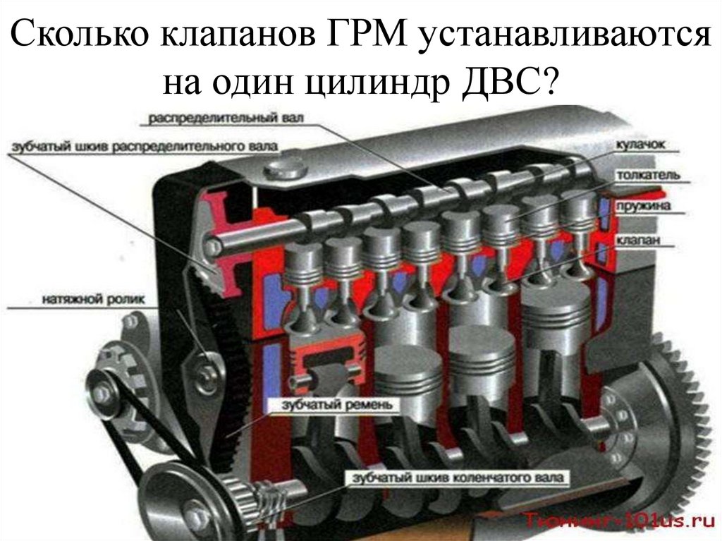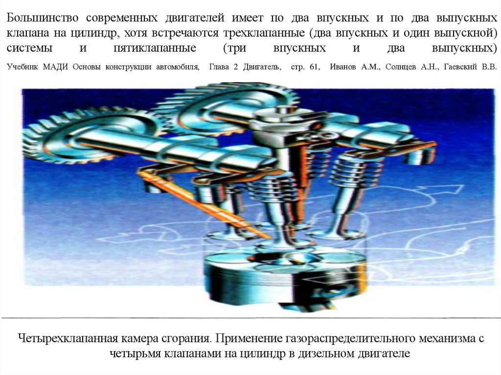 14. Для работы четырехтактного ДВС требуется как минимум по два клапана на цилиндр — впускной и выпускной. В настоящее время