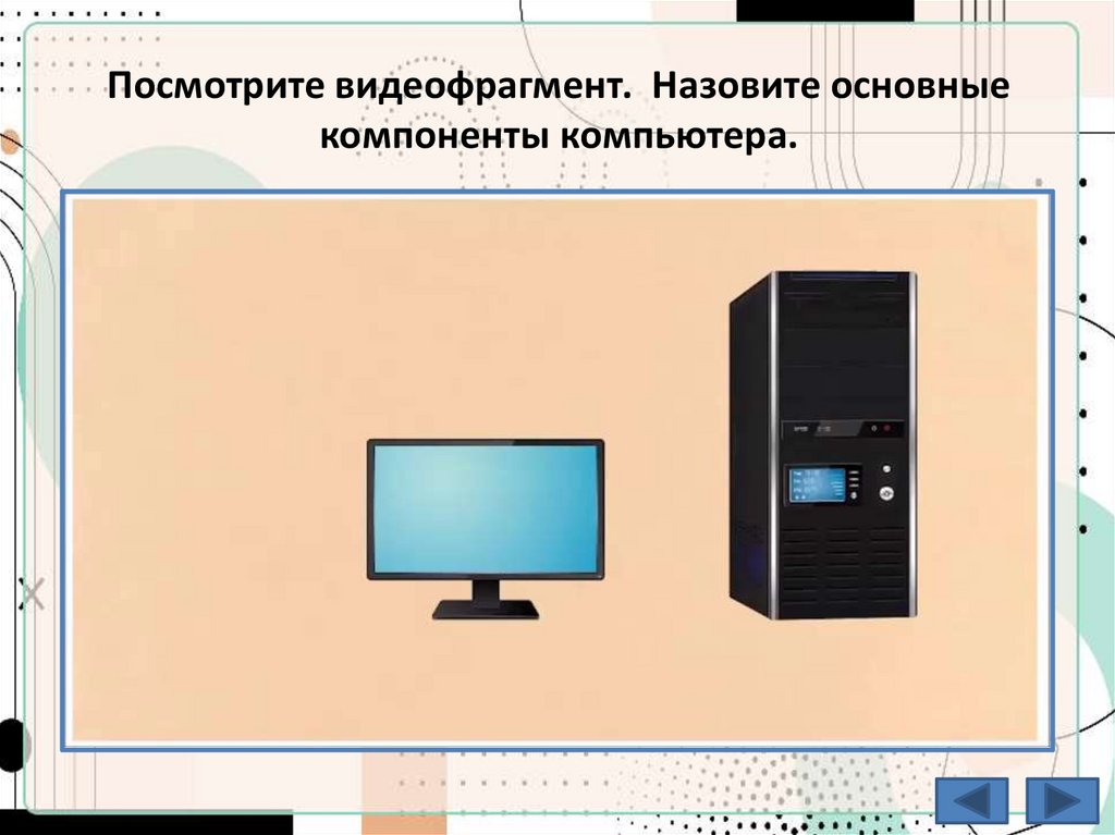 Посмотрите видеофрагмент. Назовите основныекомпоненты компьютера.