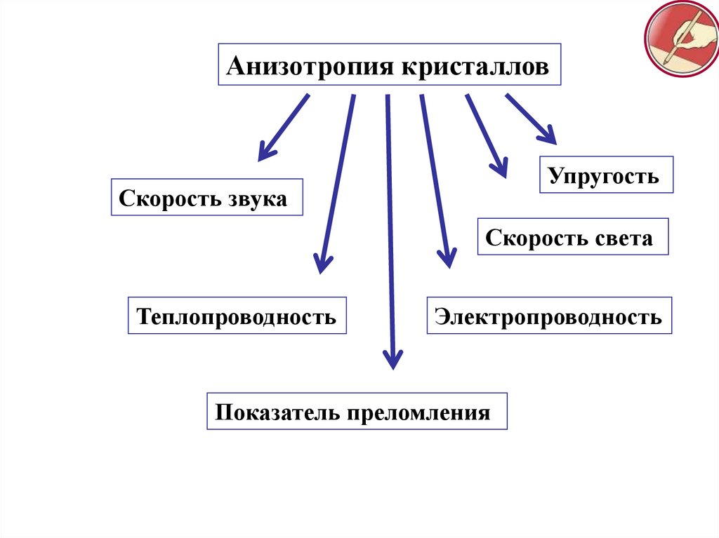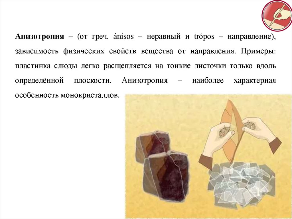 Анизотропия – (от греч. ánisos – неравный и tróроs – направление),зависимость физических свойств вещества от направления. Примеры: