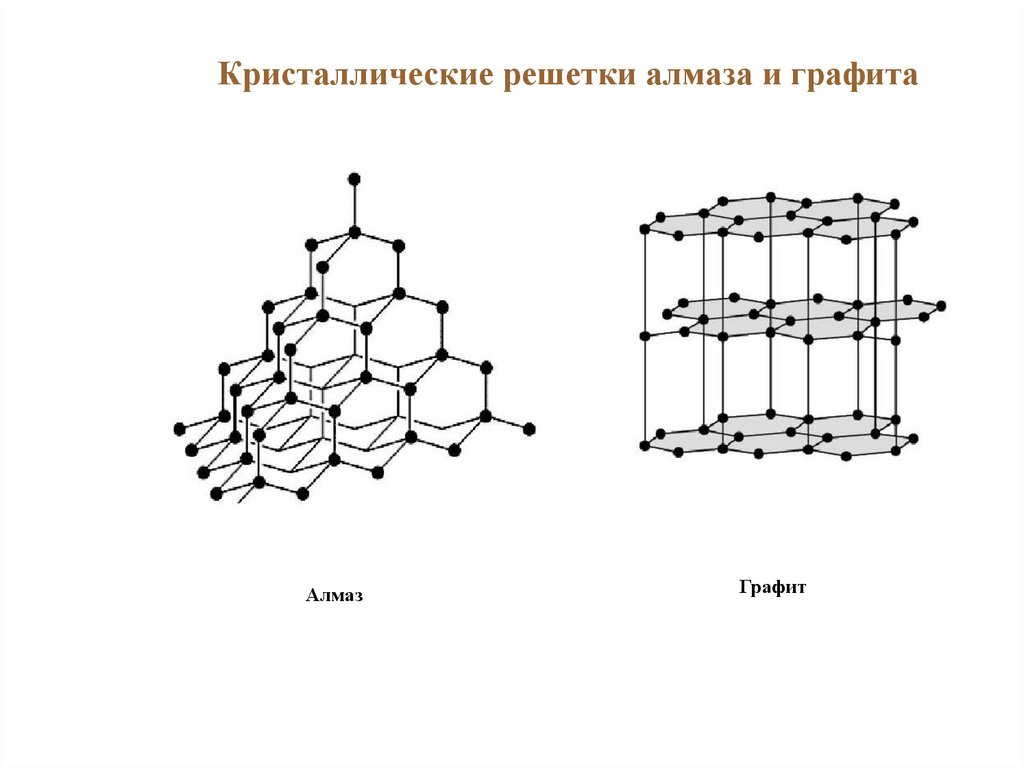 имеющий две модификации: графит и алмаз. Разное строение кристаллических решеток
