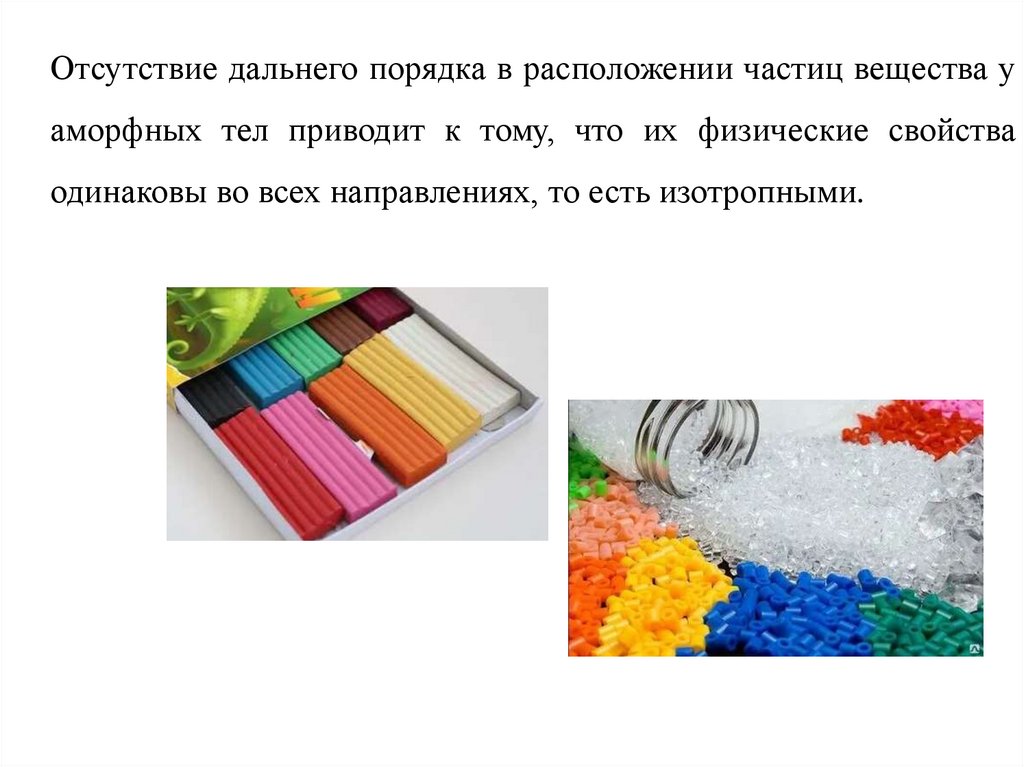 Отсутствие дальнего порядка в расположении частиц вещества уаморфных тел приводит к тому, что их физические свойства
