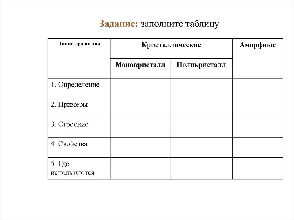 Подведём итоги!1. Кристаллические и аморфные тела кроме общих