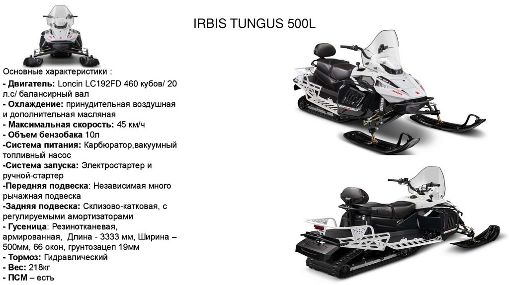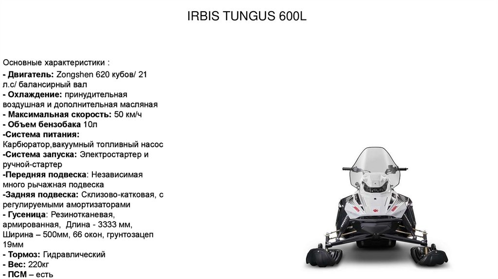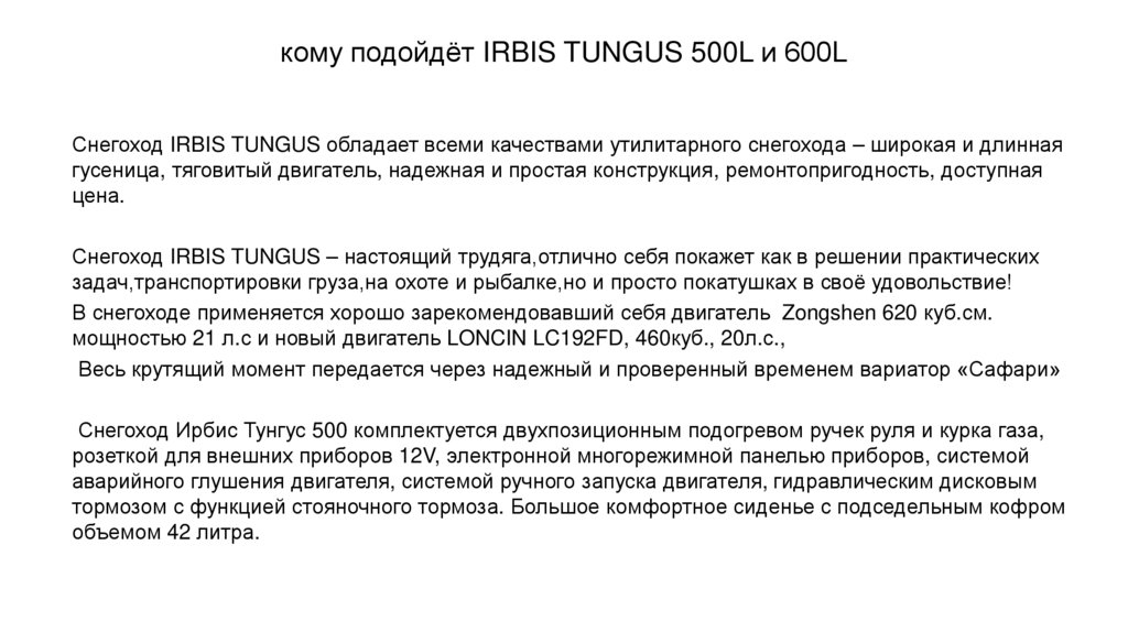 кому подойдёт IRBIS TUNGUS 500L и 600LСнегоход IRBIS TUNGUS обладает всеми качествами утилитарного снегохода – широкая и длинная