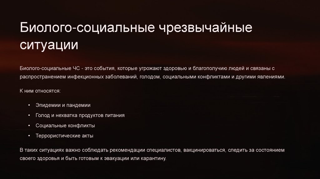 Биолого-социальные ЧС - это события, которые угрожают здоровью и благополучию людей и связаны с