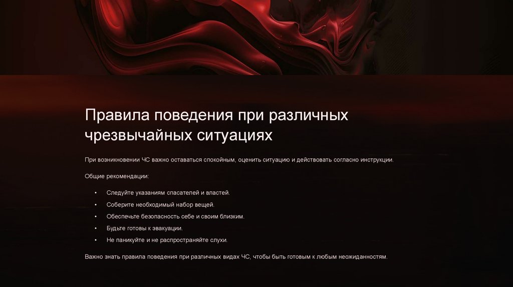 Важно знать правила поведения при различных видах ЧС, чтобы быть готовым к любым неожиданностям.