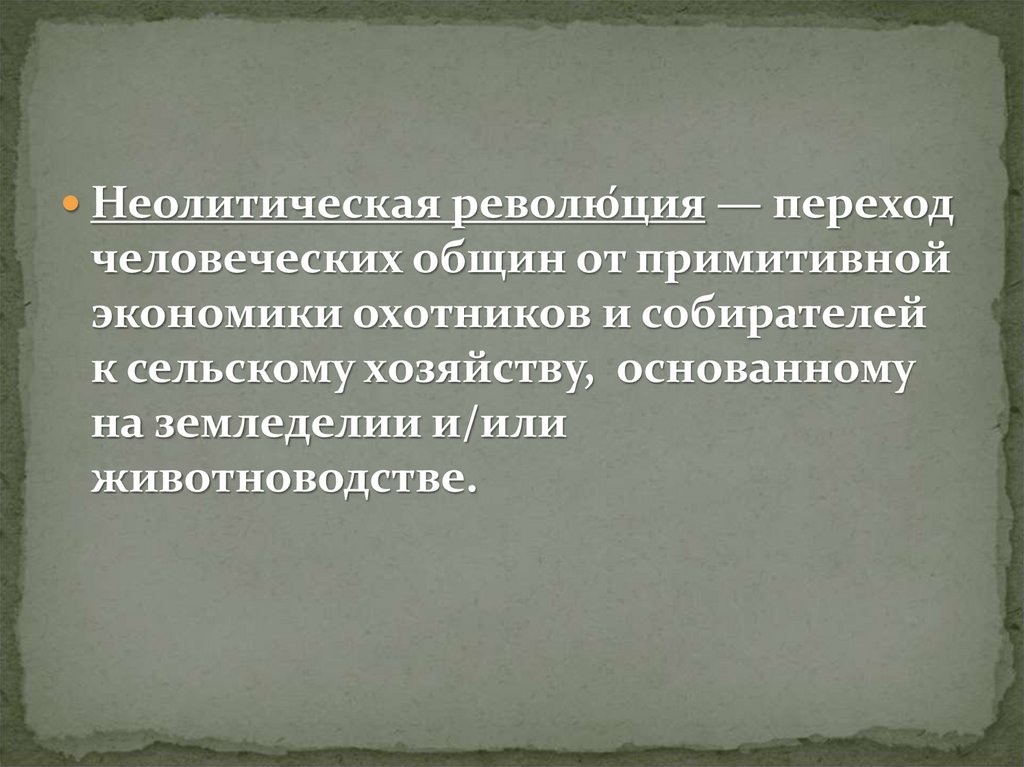 Неолитическая револю́ция — переходчеловеческих общин от примитивной