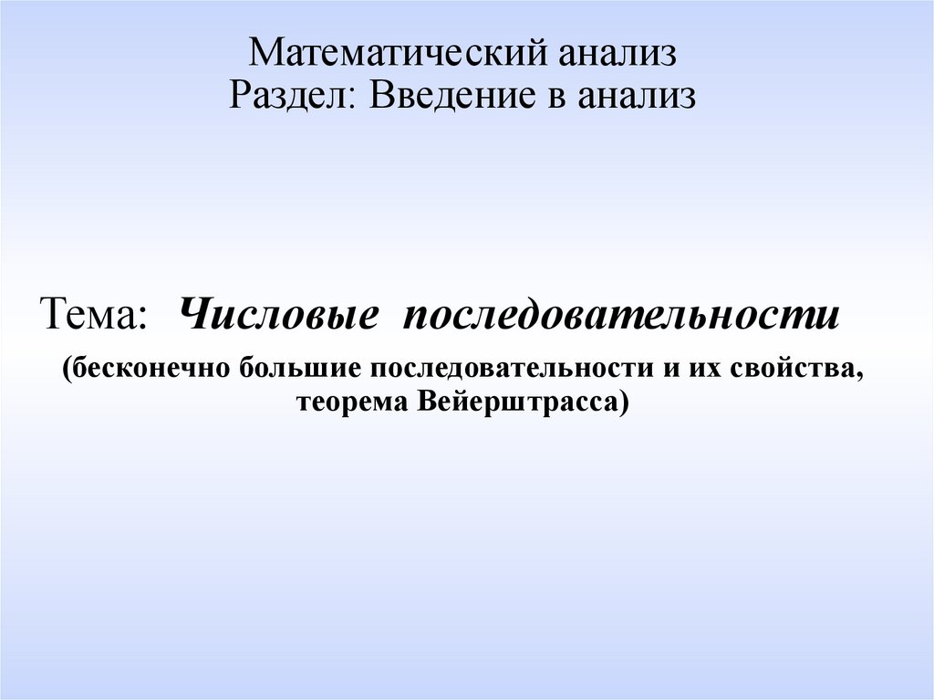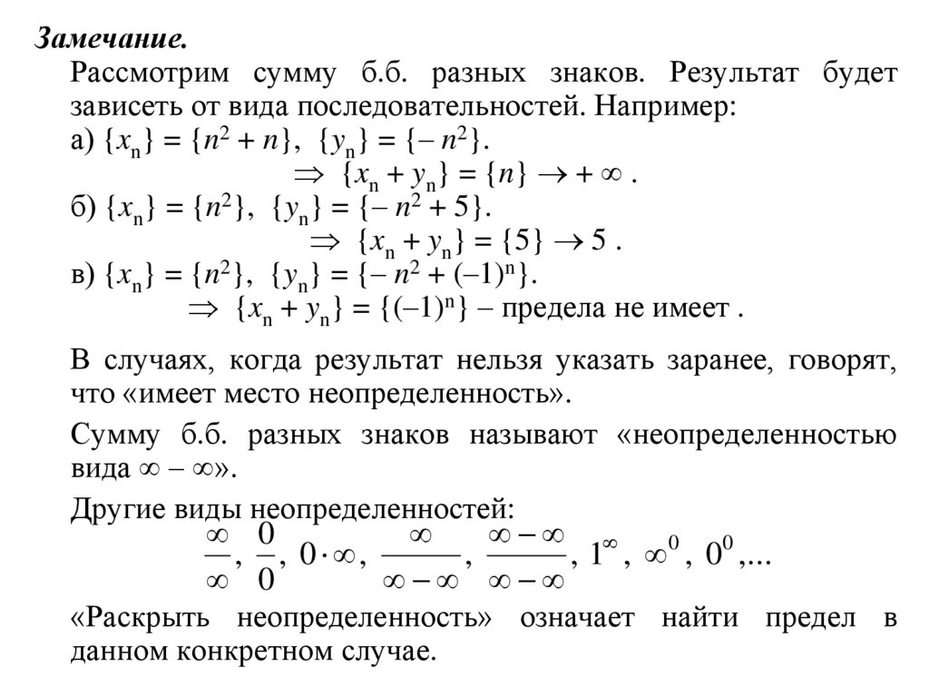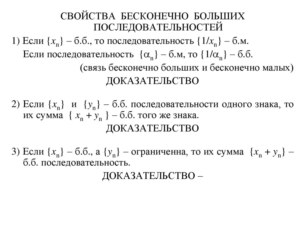 СВОЙСТВА БЕСКОНЕЧНО БОЛЬШИХПОСЛЕДОВАТЕЛЬНОСТЕЙ