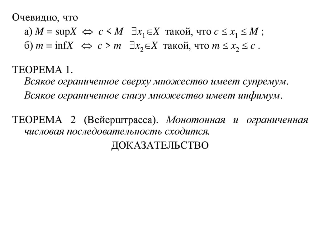 ТЕОРЕМА 2 (Вейерштрасса). Монотонная и ограниченная