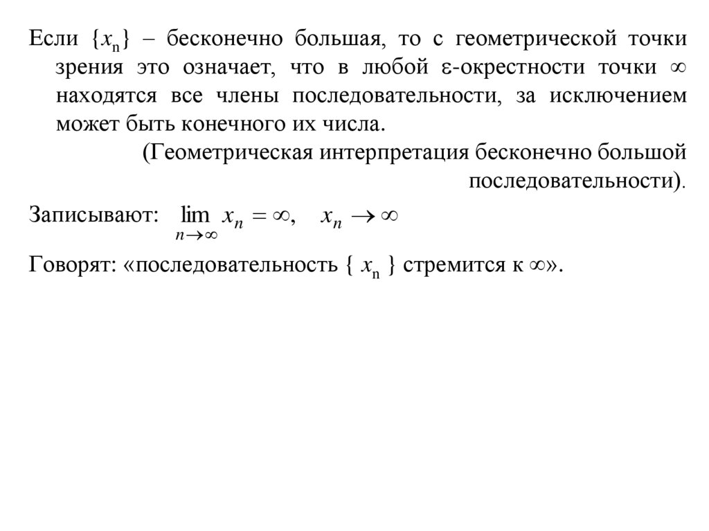 Если {xn} – бесконечно большая, то с геометрической точкизрения это означает, что в любой -окрестности точки
