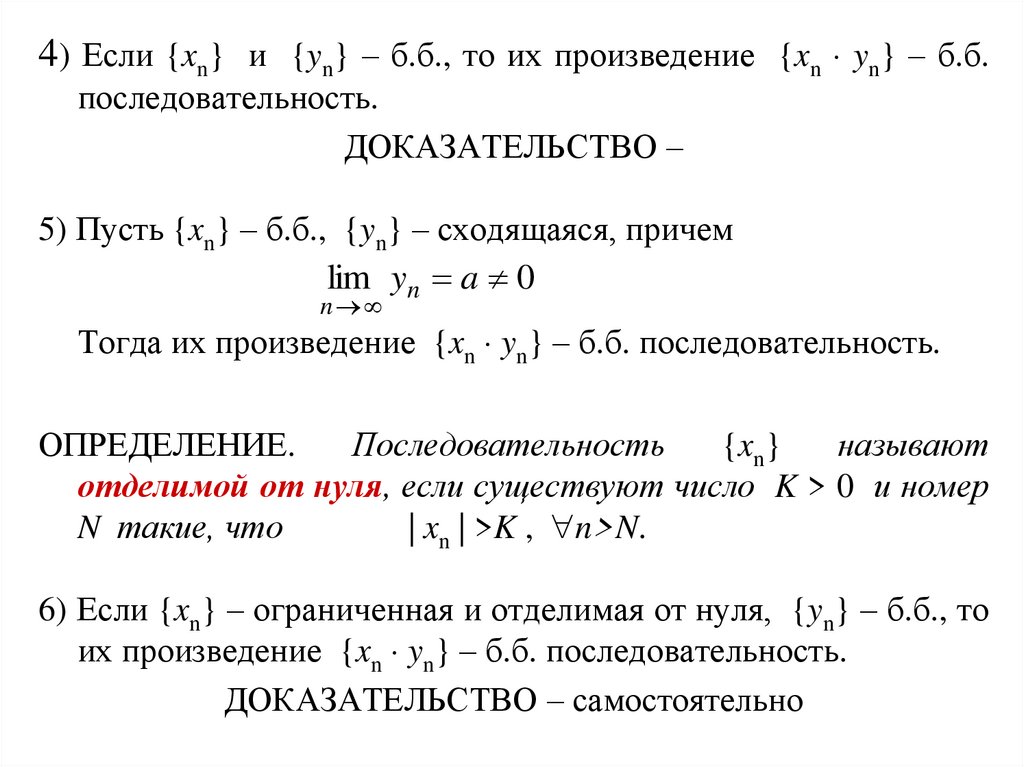 4) Если {xn} и {yn} – б.б., то их произведение {xn yn} – б.б.последовательность.