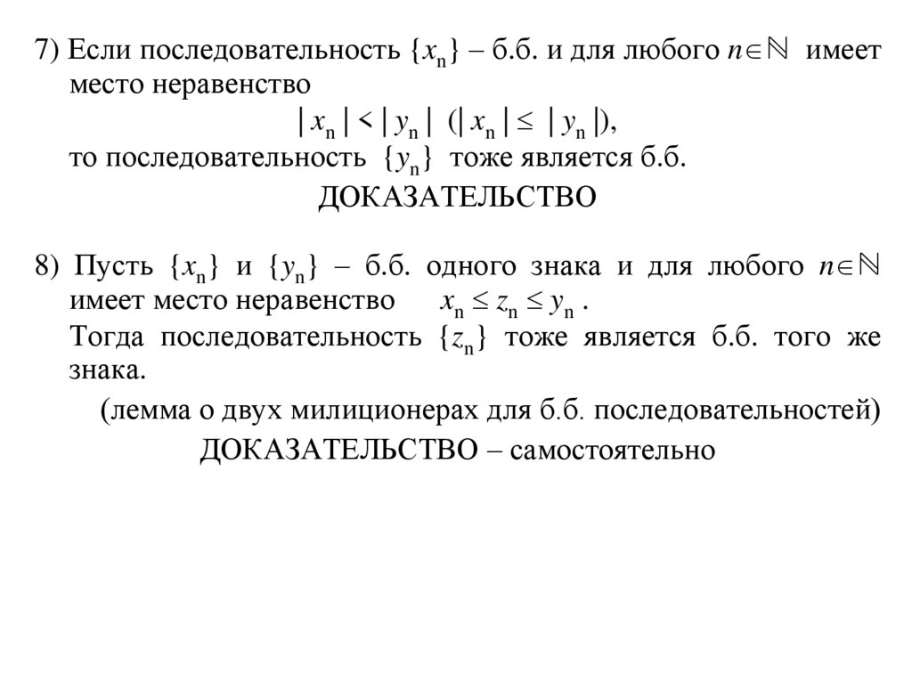 7) Если последовательность {xn} – б.б. и для любого n ℕ имеетместо неравенство
