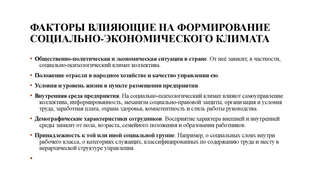ФАКТОРЫ ВЛИЯЮЩИЕ НА ФОРМИРОВАНИЕСОЦИАЛЬНО-ЭКОНОМИЧЕСКОГО КЛИМАТА