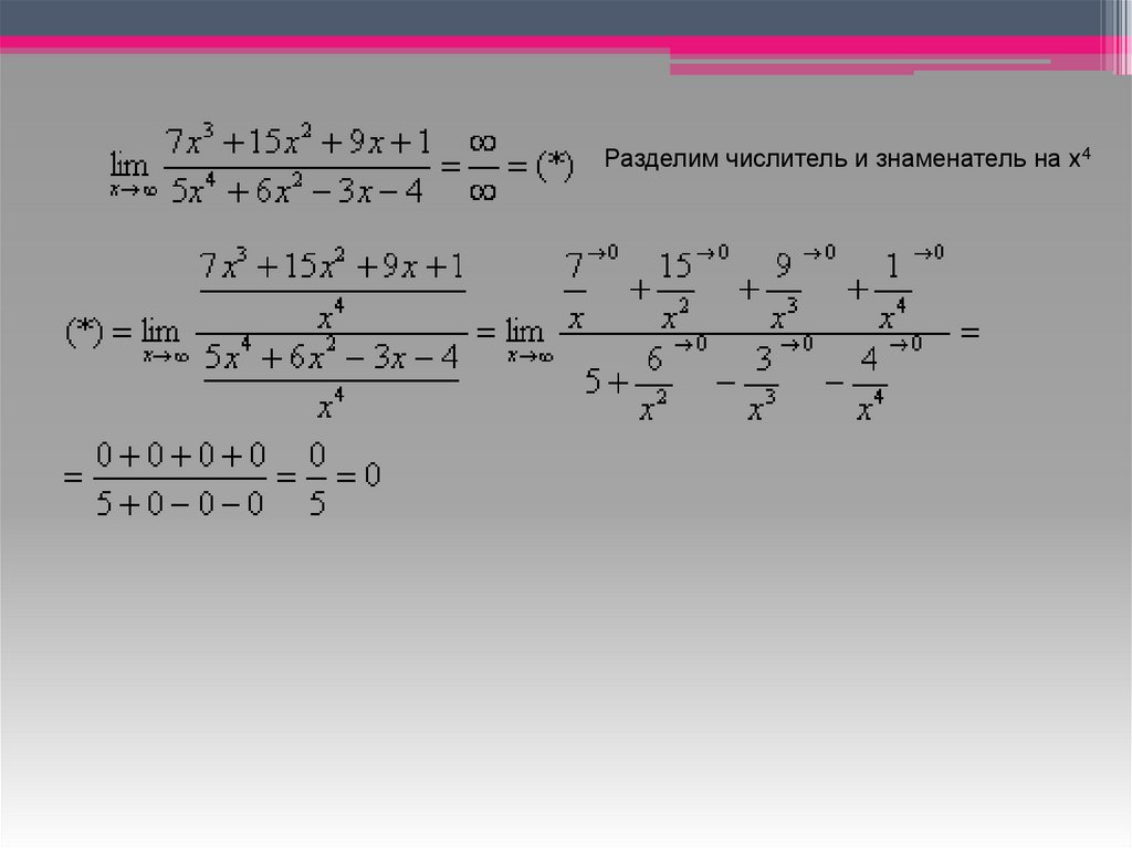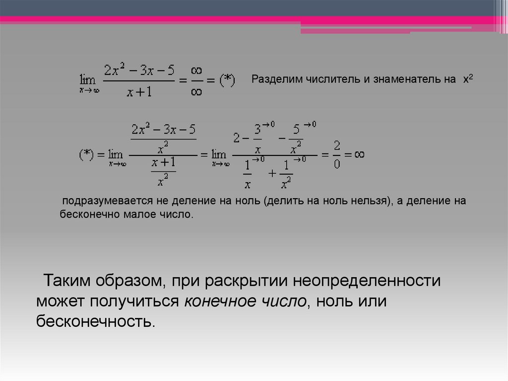 Для того, чтобы раскрыть неопределенность ∞/∞ необходимо разделить