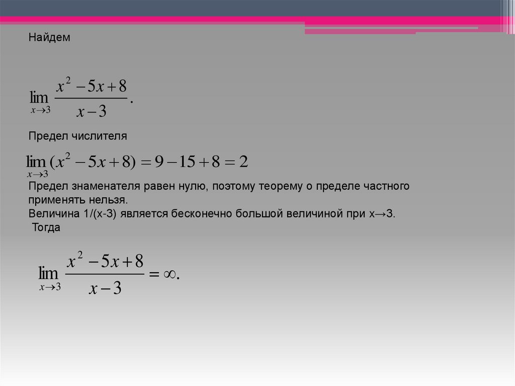 Сначала пробуем подставить 3 в выражение под знаком предела это первое,