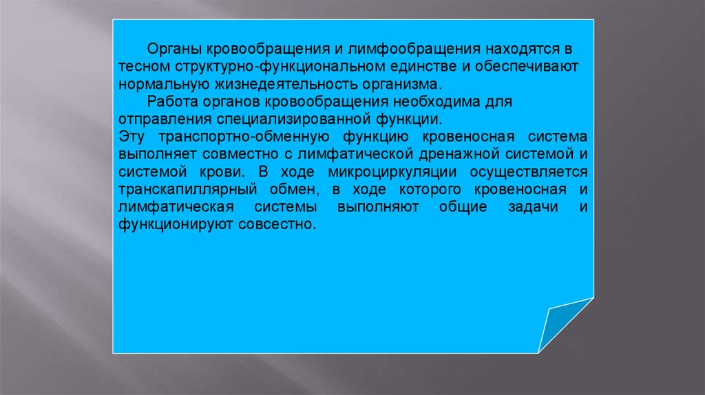 Органы кровообращения и лимфообращения находятся втесном структурно-функциональном единстве и обеспечивают