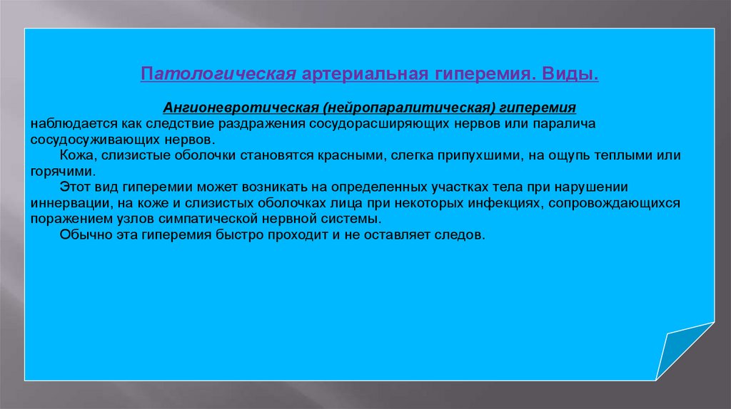 Артериальная гиперемия - повышение кровенаполнения органа или ткани