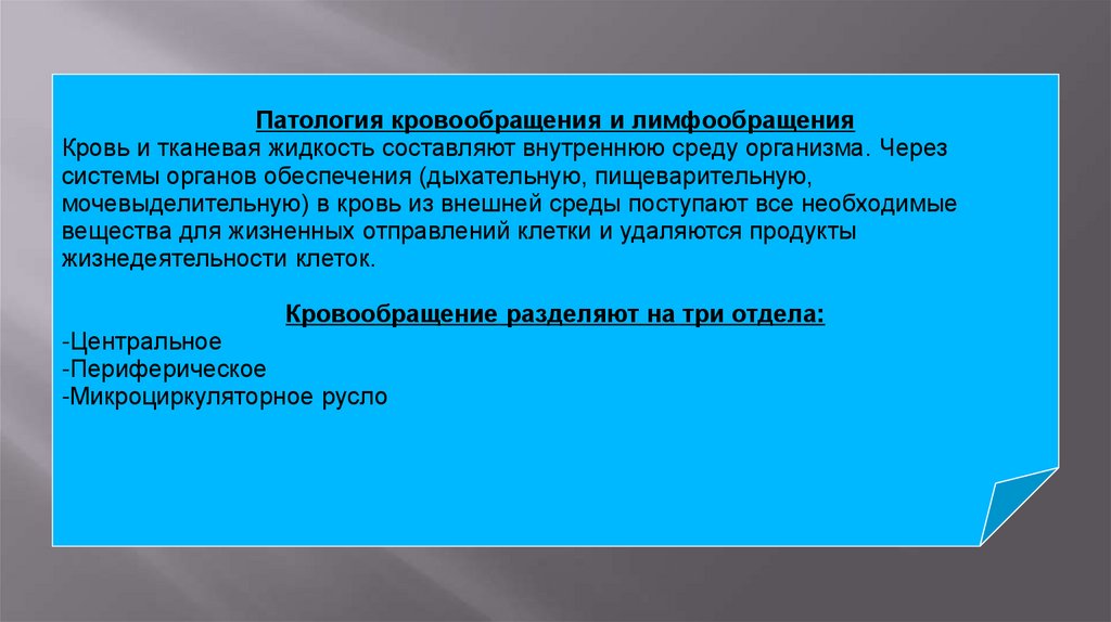 Патология кровообращения и лимфообращенияКровь и тканевая жидкость составляют внутреннюю среду организма. Через