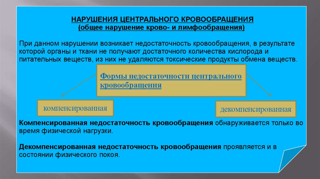 НАРУШЕНИЯ ЦЕНТРАЛЬНОГО КРОВООБРАЩЕНИЯ(общее нарушение крово- и лимфообращения)