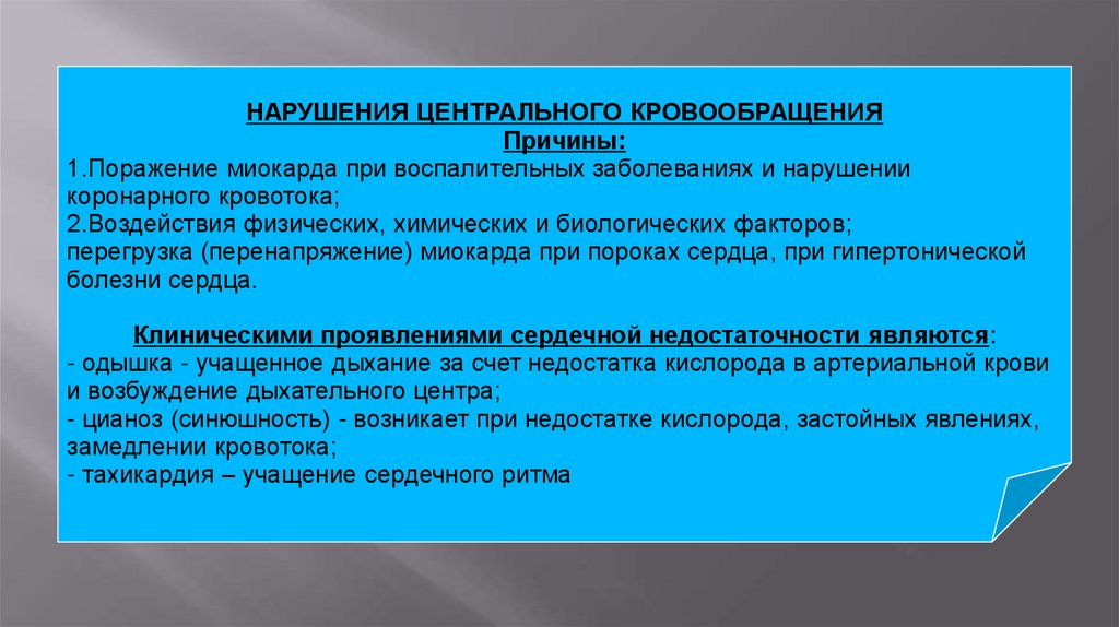 НАРУШЕНИЯ ЦЕНТРАЛЬНОГО КРОВООБРАЩЕНИЯПричины: