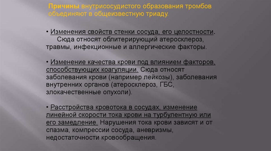 (стаз, тромбоз, эмболия)