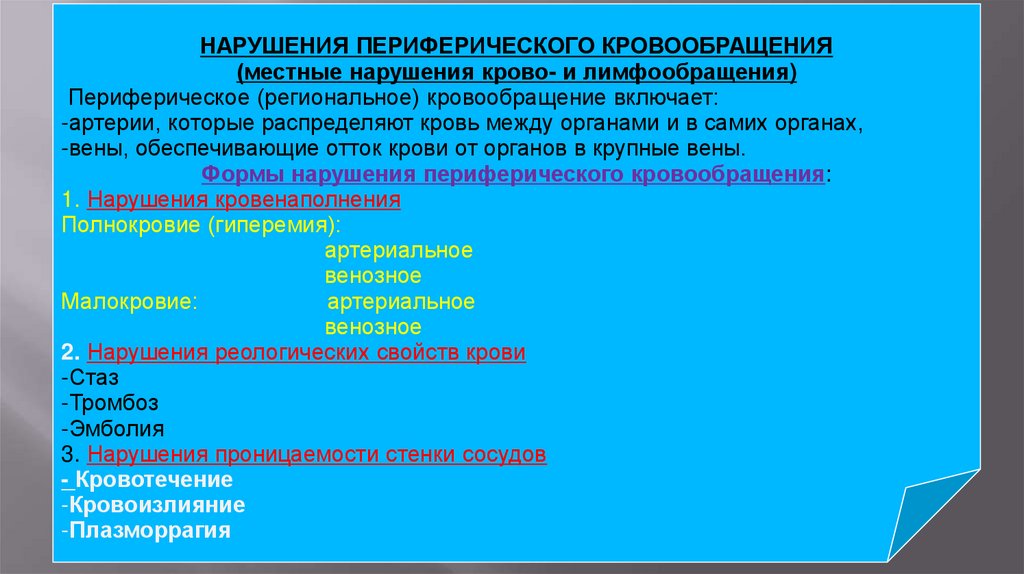 НАРУШЕНИЯ ПЕРИФЕРИЧЕСКОГО КРОВООБРАЩЕНИЯ(местные нарушения крово- и лимфообращения)