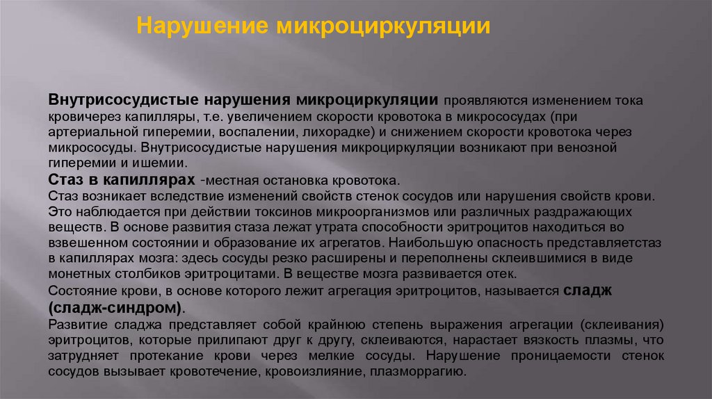 Нарушение кровотока в сосудах
