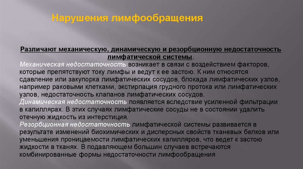 нарушенного лимфооттока, которые возникают в тех случаях, когда блокируется