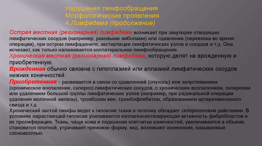 Нарушения лимфообращенияМорфологические проявления.