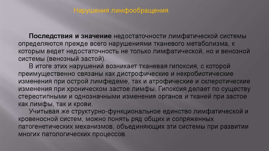 Нарушения лимфообращенияПоследствия и значение недостаточности лимфатической системы