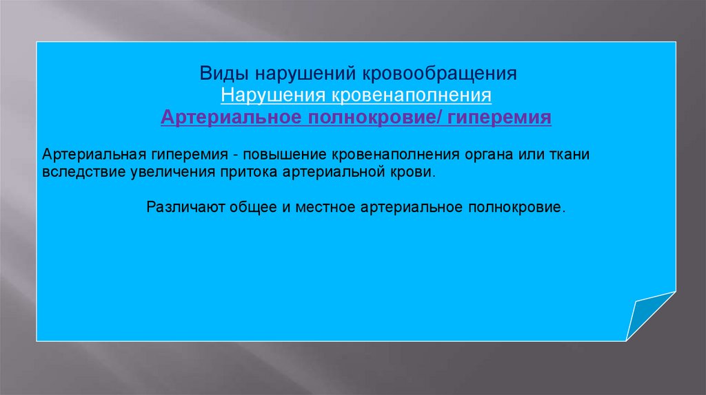 Различают общее и местное артериальное полнокровие.