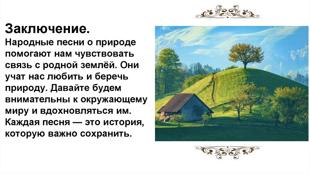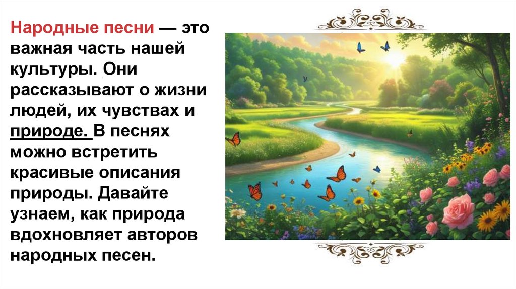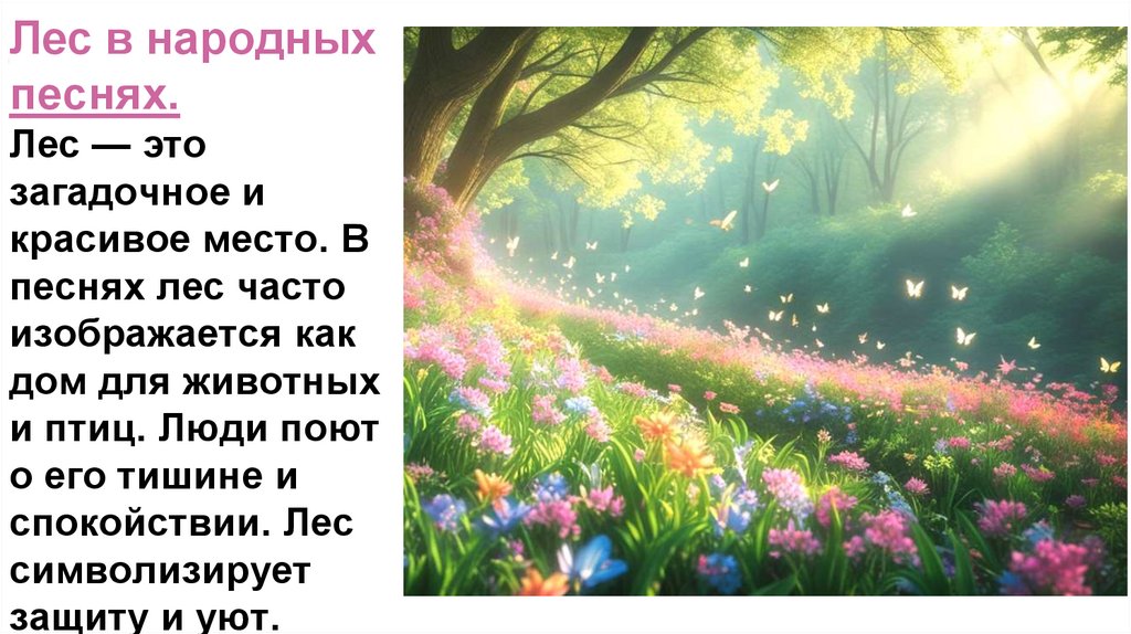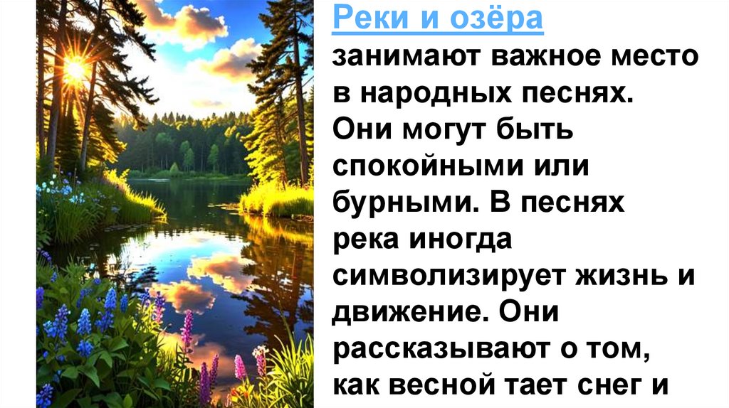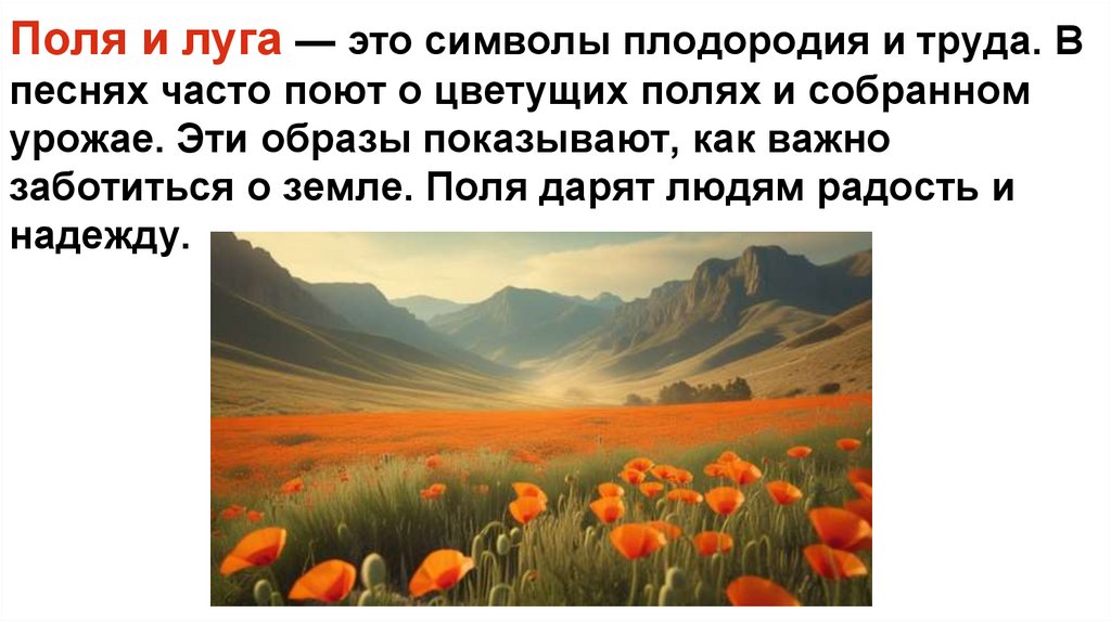 Поля и луга — это символы плодородия и труда. Впеснях часто поют о цветущих полях и собранном