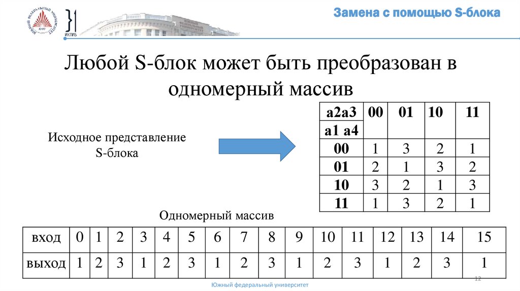 Замена с помощью S-блокаЛюбой S-блок может быть преобразован в
