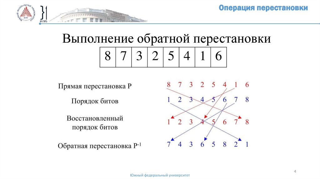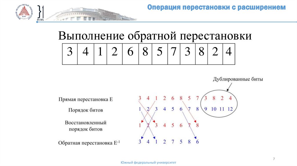 Операция перестановки с расширениемВыполнение обратной перестановки