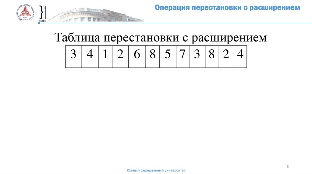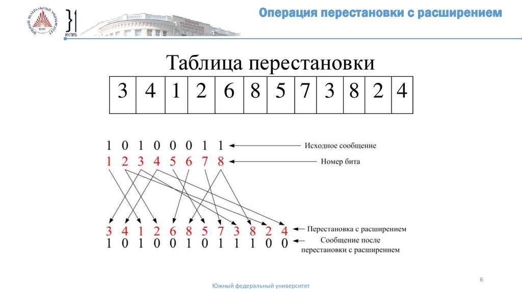 Операция перестановки с расширениемТаблица перестановки с расширением