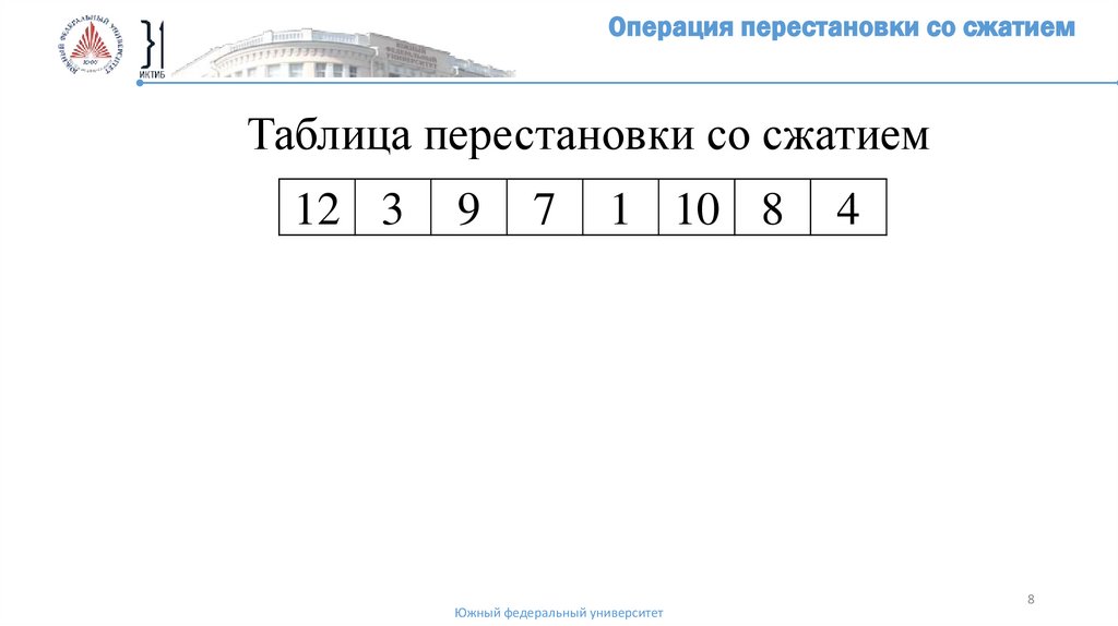 Операция перестановки со сжатиемТаблица перестановки со сжатием