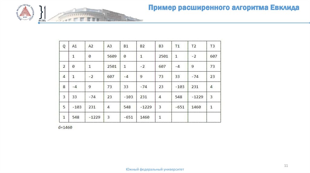 Пример расширенного алгоритма ЕвклидаЮжный федеральный университет