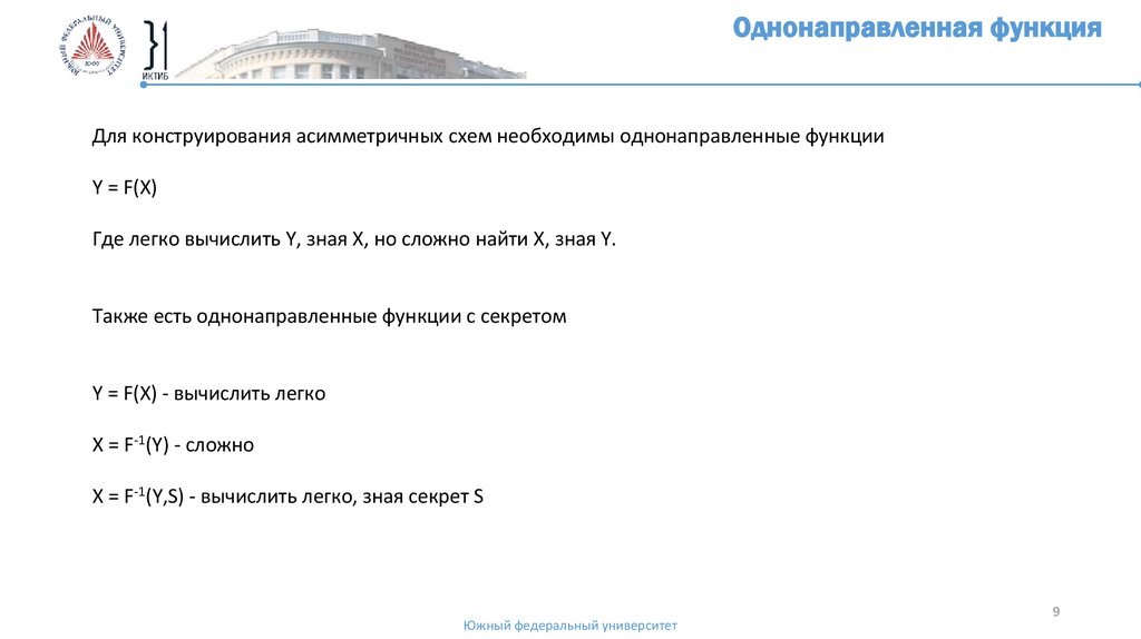 Однонаправленная функцияДля конструирования асимметричных схем необходимы однонаправленные функции