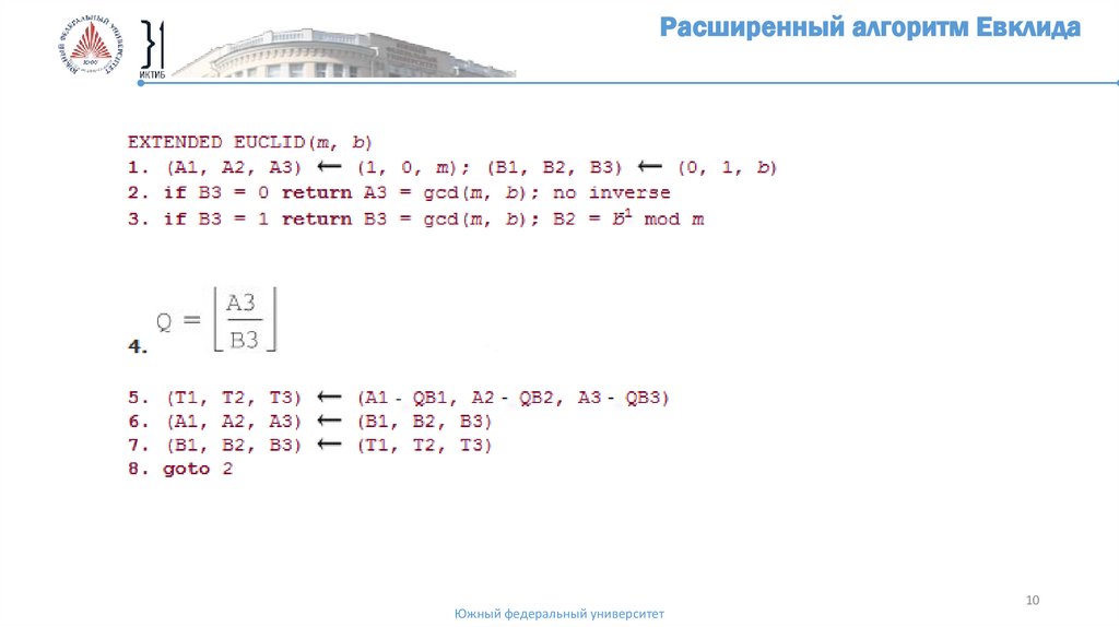 Расширенный алгоритм ЕвклидаЮжный федеральный университет