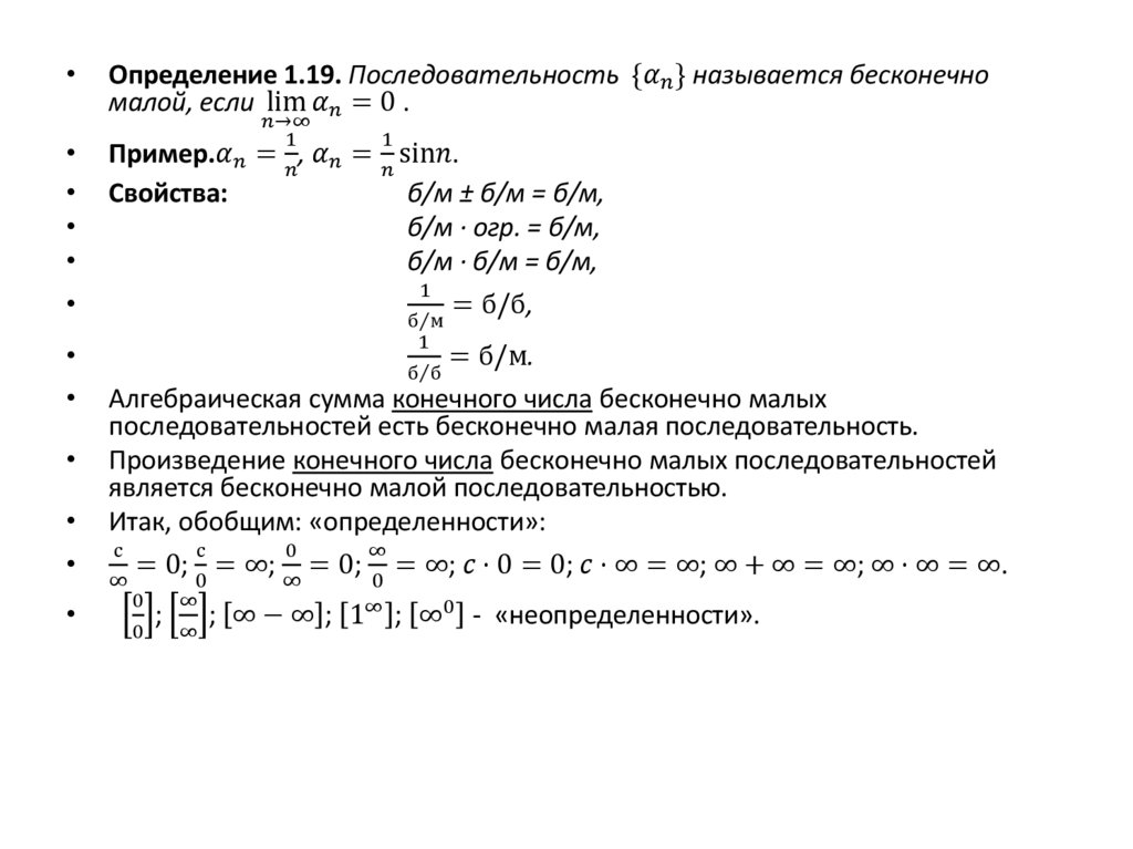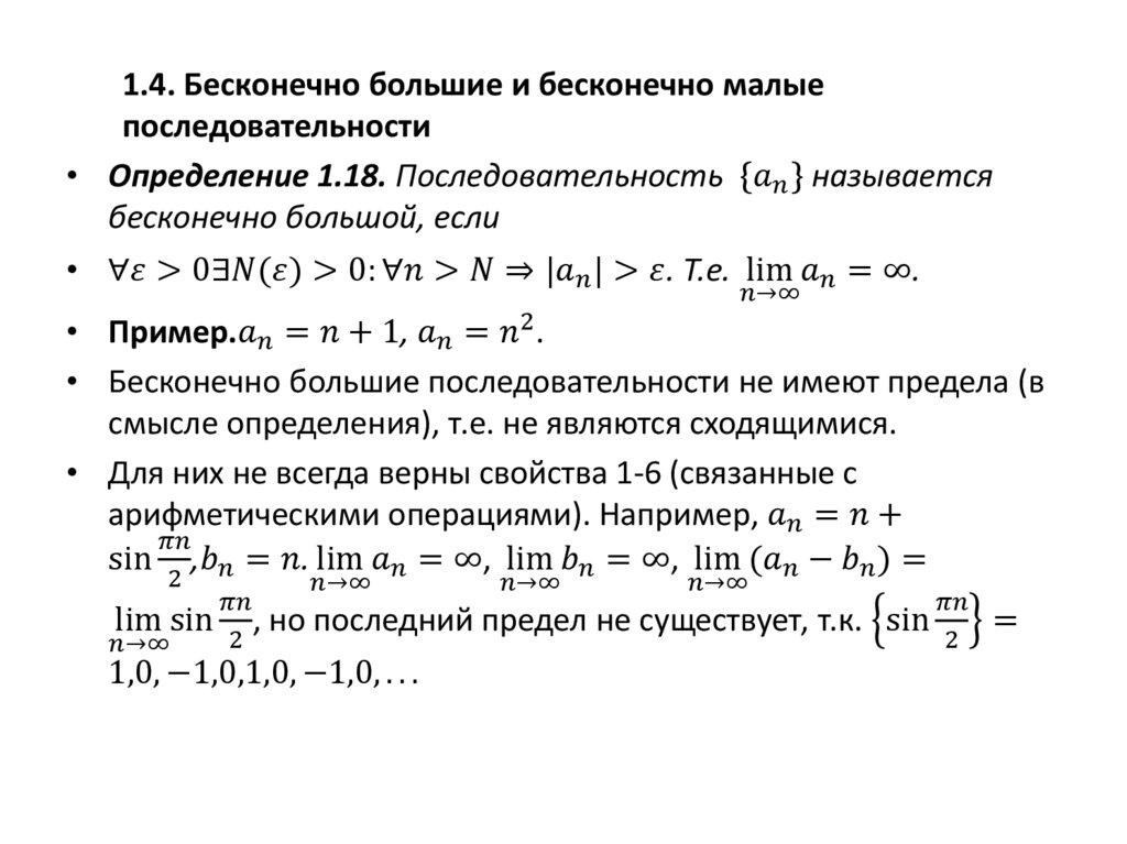 Предел числовой последовательности. Бесконечно малые и бесконечно большие последовательности. Предел суммы, разности