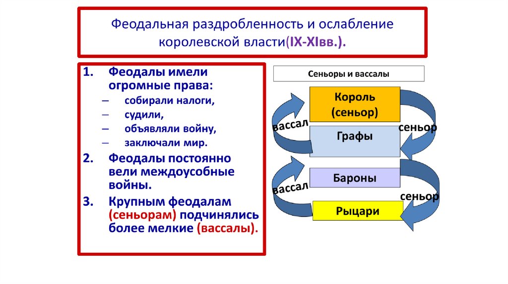 • 1.Империя не было прочной,• 5.Феодальное право,