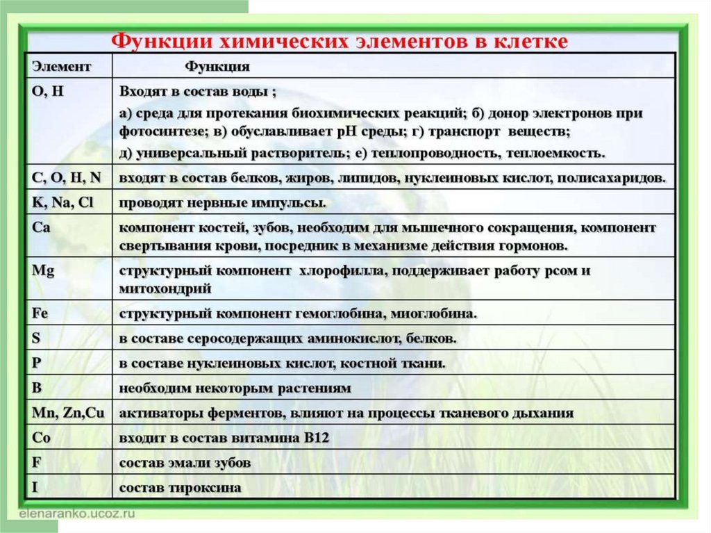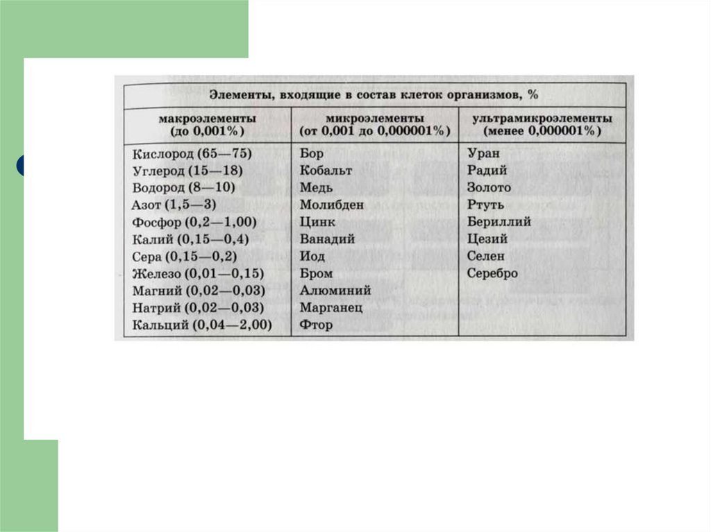 1. 2.3.1 Химический состав клетки.