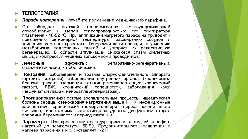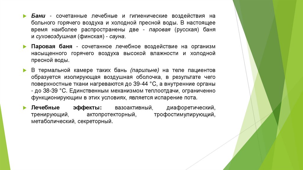 определяются тепловым и механическим факторами. Наряду с ними лечебным фактором